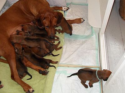 Am 14.01.2010 brachte Ceiju ihre 12 kräftigen Hundebabies zur Welt (6Rü/6Hü) .
