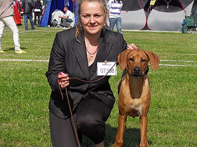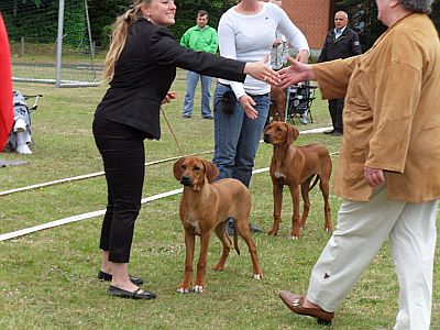 Auf der Weltsiegerschau in DK, unter dem südafrikanischen Richter Martin Croesner, gewann sie die Babyklasse der Hündinnen bei ihrer allerersten Show!